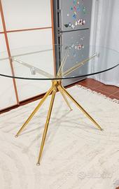 vendo tavolo in vetro nuovo Deghi con gambe in acciaio dorate smontaggio e spedizione a carico dell' acquirente