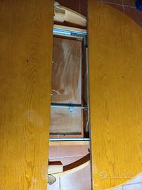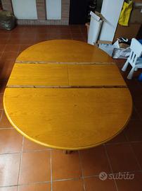 Un tavolo rotondo in legno massello, con un diametro di 120 cm, rappresenta un pezzo di arredamento classico e senza tempo. Questo particolare modello è allungabile, dotato di un'inserto nascosto di circa 35 cm, che lo rende perfetto per ospitare più ospiti. Risalente ai primi anni '90, si presenta in ottime condizioni con una finitura lucida che ne esalta la qualità e l'eleganza.