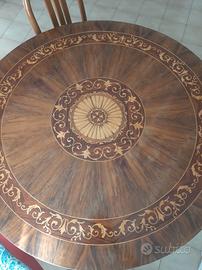 Bel tavolo rotondo primi del 900, in legno finemente intarsiato .no tarli La base è tornita e ha terminali in ottone . Diametro 110 cm . Ritiro a Senigallia .