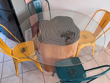 Vendo per cambio arredamento tavolo rotondo (diametro 120 cm, fino a 6 posti a sedere, il cristallo è solo appoggiato alla base), spessore cristallo 13 mm, basamento in legno e bambu. Qualche piccolo segno di usura sia sul cristallo, sia sul basamento, quasi invisibili. Valore del tavolo nuovo 1800 €. Acquistato nel 2020. Possibilità di acquisto a parte di 6 sedie per 25 euro/cad in metallo colorato (2 gialle+2 verde bottiglia + 2 nere) condizioni perfette. Per informazioni e altre foto, scrivete! Solo ritiro, no spedizione. Visibile in zona Malpensa.