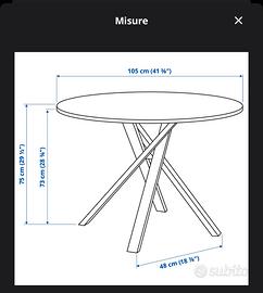Tavolo rotondo con gambe intrecciate in metallo, piano effetto marmo. Il tavolo è in ottimo stato. Sedie non icluse