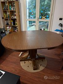 Tavolo rotondo per 4 persona estendibile e diventa ovale per 6/8 persone. Tenuto bene. Ganci sotto al tavolo vecchia da sostituire ma si agganciano con dei perni quindi rimane chiuso e stabile lo stesso.