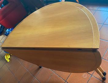 Tavolo in frassino progettato e realizzato da Giorgetti S.P.A. Caratterizzato da un piano circolare pieghevole lungo il diametro, offre funzionalità e design innovativo. Il ripiano è laccato in marrone. Ritiro da parte dell’acquirente a domicilio
