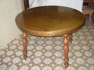 tavolo rotondo in legno massello rovere con gambe tornite Anni '80 in ottime condizioni, allungabile; diametro 110 cm con allungo centrale di 40 cm