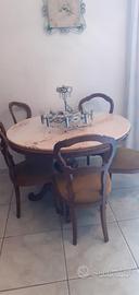 tavolo rotondo legno massello allungabile con 5 sedie e top in marmo