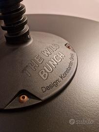 Tavolo Topsy – The Wild Bunch – di Konstantin Grcic per Magis Design Italia. Diametro Cm. 60, altezza regolabile da Cm. 64.5 a 84.5. Struttura in massello di faggio verniciato, giunto e vite in polipropilene, piano in HPL. Nero opaco. Pari al nuovo. Ritiro a mano.