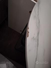 Tavolo rotondo NUOVO. Rovinato sul bordo, ma riparabile con stucco. Marchio Tomasucci. Diam. 90 cm. Solo 20 euro