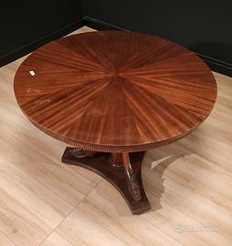 Importante tavolo rotondo in mogano, realizzato con raffinata maestria