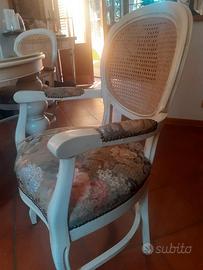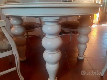 Vendo tavolo rotondo serie SHEBBY CHIC, in ottime condizioni, materiale in legno massiccio laccato RAL 1013, con piano in vetro in cristallo lavorazione Bohemia sul lato in appoggio al tavolo e liscio nella parte superiore, gambe a rocchetto, quattro postazioni comode, dimensioni diametro 120 cm. altezza 82 cm. Richiesta euro 1.500,00. Vendo anche le 4 sedie/poltrone abbinate, a 150,00 euro cad. Tutto in blocco, prezzo un poco trattabile.