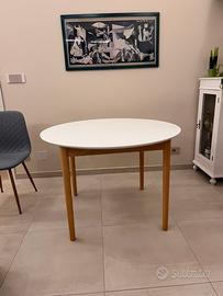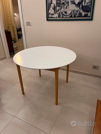 Tavolo rotondo, 120cm di diametro estendibile con prolunghe a 240. Buone condizioni colore ripiano bianco, gambe in legno chiaro. Vendo per inutilizzo.
