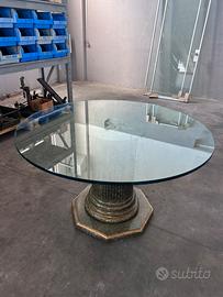 Vendo splendido e scenografico tavolo da pranzo rotondo, un pezzo di modernariato dal forte impatto visivo, tipico dello stile eclettico e lussuoso degli anni '70/'80 (stile Hollywood Regency).