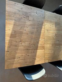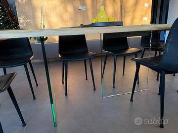 Vendo un elegante tavolo BONALDO con piano in rovere (180x90 cm) e gambe in cristallo. Il tavolo include due prolunghe da 60x90 cm ciascuna, raggiungendo una lunghezza totale di 3 metri.