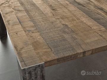 TAVOLO ROVERE PATINA GRIGIA TRATTATO CERA NATURALE L. 170 P. 100 H. 77 SP. 40 mm CON GAMBE TAVOLO IN FERRO