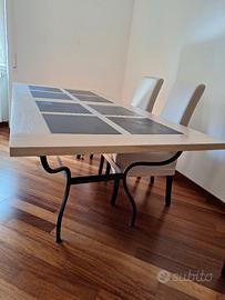 tavolo rovere masello e 8 quadri in lavagna sostituibile con qualsiasi altra materia. Piedi in ferro battuto. 200 cm x 100 cm altezza 76 cm. Come nuovo. Ritiro a Roma Marconi