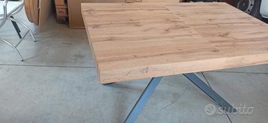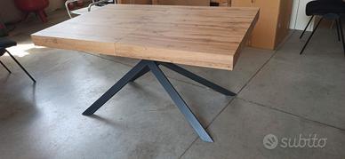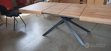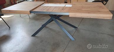 Tavolo Rovere Nodato Allungabile con gambe incrociate e basamento in metallo verniciato .