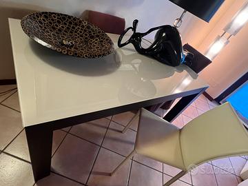 Tavolo di rovere scuro e piano in cristallo beige mai usato si vende causa traslocco. Se servono ci sono 6 sedie in pelle beige. Le misure del tavolo sono lungh. 1,60 e largh. 90.