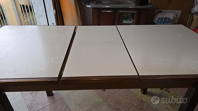 Dimensioni Generose: Il tavolo misura circa $1,50 \times 0,80/0,90$ m quando è chiuso.Meccanismo Allungabile: Dotato di un sistema a scorrimento centrale con guide in metallo perfettamente funzionante, che permette di estenderlo facilmente per ospitare più persone.