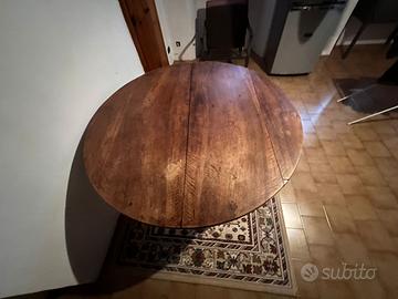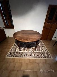 Vendo affascinante tavolo d'epoca in legno massello, caratterizzato da un piano ovale e gambe tornite che richiamano lo stile rustico tradizionale. Il legno presenta una patina naturale che ne esalta l'autenticità, con segni di usura coerenti con l'età, aggiungendo charme