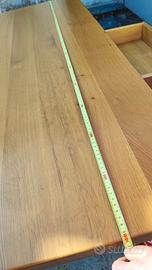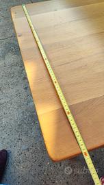 Vendo tavolo in legno massiccio dalle tonalità calde e chiare. Dotato di un comodo cassetto centrale con pomello in legno e gambe tornite dal design classico. Molto versatile: perfetto come tavolo da cucina, scrivania o piano da lavoro. Struttura sana e molto robusta.