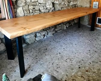 In foto un tavolo realizzato con un'unica tavola di cedro lunga 300 cm e larga 80. Le gambe sono in ferro lasciato grezze e verniciate con trasparente satinato.