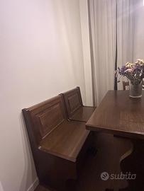 Tavolo rustico 120x60, con 4 sedie e due panche contenitore, tutto in legno. Buone condizioni. Ritiro in loco Prezzo trattabile