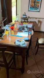 Vendo tavolo rustico in legno massello noce/rovere di grandi dimensioni, solido e stabile. Ideale per sala da pranzo, taverna o casa di campagna. Misure: lunghezza 205 cm larghezza 100 cm altezza 80 cm Struttura robusta in legno vero (non laminato). Ritiro a mano.