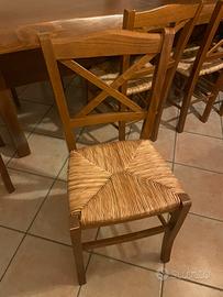 •14 sedie FEM Made in Italy in legno con seduta in paglia intrecciata a mano, modello rustico con schienale a doppia croce