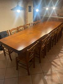 Tavolo artigianale in castagno massello – piano unico – 14 posti – con sedie FEM Made in Italy