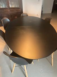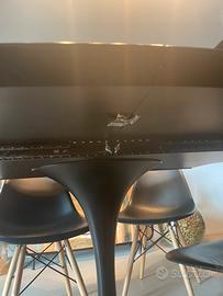 Vendo tavolo ovale Saarinen base in alluminio laccato e piano in laminato liquido 199X121 cm allungabile fino a 250cm (12 posti comodi), incluse 6 sedie in policarbonato e gambe in legno.