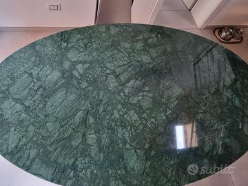 tavolo tulip Saarinen rotondo cm.120 base fusione di alluminio laccata bianca e top in marmo verde Guatemala prodotto made in Iatly 100%