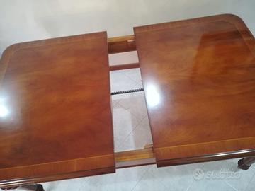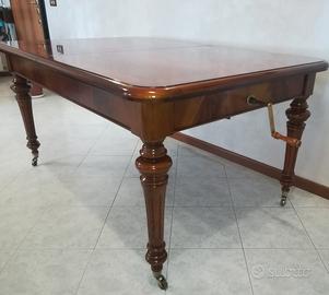 Tavolo in noce per sala da pranzo allungabile con manovella gambe tornite lavorate con rotelle misure: 160x105 cm