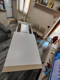 Vendo tavolo mondo convenienza, allungabile con fino a 12 coperti con 2 prolunghe nascoste nel vano sottostante a scomparsa.