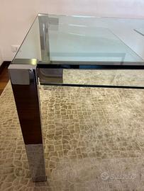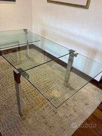 Tavolo Tonelli Livingstone Allungabile con piano in vetro temperato trasparente e gambe in acciaio cromato. Dimensioni 120 (Allungabile da entrambe le parti ,arrivando a 240 cm) x 90 larghezza x 74 altezza.