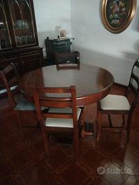 Tavolo sala da pranzo in legno allungabile. Diametro 118 cm allungato 150 cm.