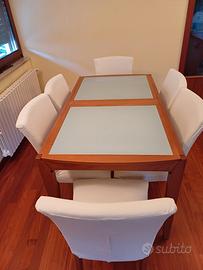Tavolo sala da pranzo vetro e legno con 6 sedie