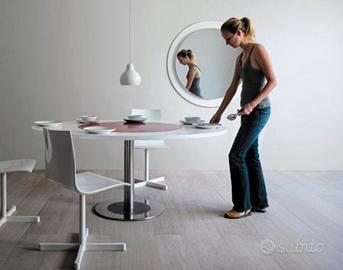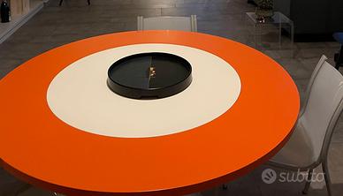 COMPOSTO DA FISSO DIAMETRO 90 CM.( COLORE BIANCO) + ANELLO ARANCIONE DELLO SPECCHIO (CHE PORTA IL TAVOLO A 140CM DI DIAMETRO)