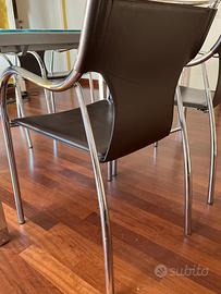 Tavolo sala e 4 Sedie acciaio lucido ed ecopelle