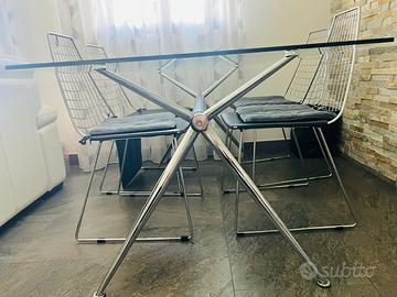 Vendo tavolo midj in perfette condizioni. Tavolo in vetro misura 160x90. Compreso un kit di 4 sedie sempre marca midj in pelle nera. Due sedute hanno dei segni per usura (vedere foto). Prodotti vendibili separatamente. Prezzo trattabile.Ritiro a mano