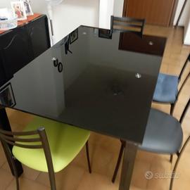 vendo per causa imminente trasloco, bellissimo tavolo moderno nero con base vetro super temperato ,no sbeccatture,telaio in acciaio verniciato lucido allungabile,