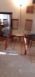 Vendo tavolo per sala da pranzo in cristallo ( diametro 126), con base in legno.