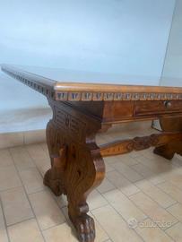 Tavolo antico restaurato piano in noce base faggio misure 180*90.