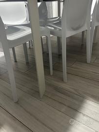 Tavolo con top in ceramica nero e gambe in metallo verniciato bianco