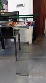 Il piano e le gambe sono realizzati in vetro temperato trasparente, che offre leggerezza visiva e luminosità.
