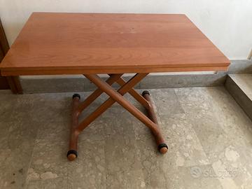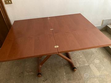 Vendo Tavolo saliscendi alzabile ed allungabile in attime condizioni. Misure H 40 cm L 110 P 70 cm da chiuso, H 77 cm L 110 cm P 140 cm da aperto. Piccolissime imperfezioni come da foto. Molto solido. Prezzo da nuovo 1800 euro una decina di anni fa.
