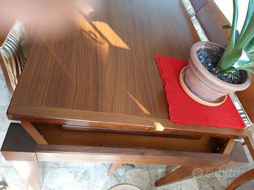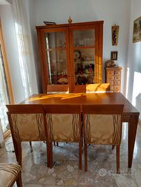 Tavolo in legno, allungabile fino a 8 posti comodi completo di 6 sedie ergonomiche ed imbottite, marca Bruno Piombini (solo le sedie sono state pagate 450 euro l'una). Le sedie sono da rivestire ma l'imbottitura è perfetta ed il loro schienale sinuoso accompagna la schiena, per cui la seduta è estremamente comoda. Me ne privo causa trasloco.