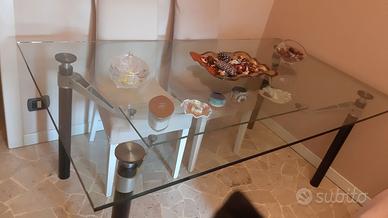 Vendo a 200 euro trattabili, tavolo in vero cristallo con gambe in acciaio ,pagato all acquisto 1000 euro, ha due scheggiature una in un angolo e l altra nella mensola sotto, tenuto bene se interessati contattatemi