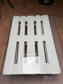Tavolo salotto realizzato artiginalmente con pallet con ruote 120x80 completo di vetro superiore