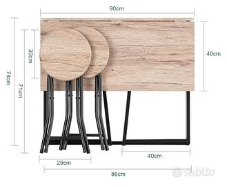 tenuto perfettamente, nessun segno di usura, gambe e struttura in metallo, pieghevole. Perfetto per poco spazio. misure 90x45. completo di due sgabelli