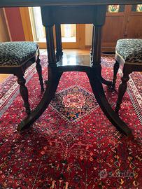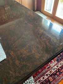 Tavolo quadrato, in radica di noce, misura 115x115, con due allunghi laterali di 30 cm. Mobilificio Righi Sono presenti piccoli segni di usura , facilmente restaurabili. Disponibili sei sedie da abbinare