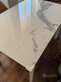 Tavolo 160 cm allungabile a 200 cm Top in grès porcellanato lucido effetto marmo di Carrara bianco e gambe in alluminio bianche Acquistato nel 2022 a 1100€ vendo a 400€ per cambio arredamento. Usato in perfette condizioni Trasporto a carico del acquirente